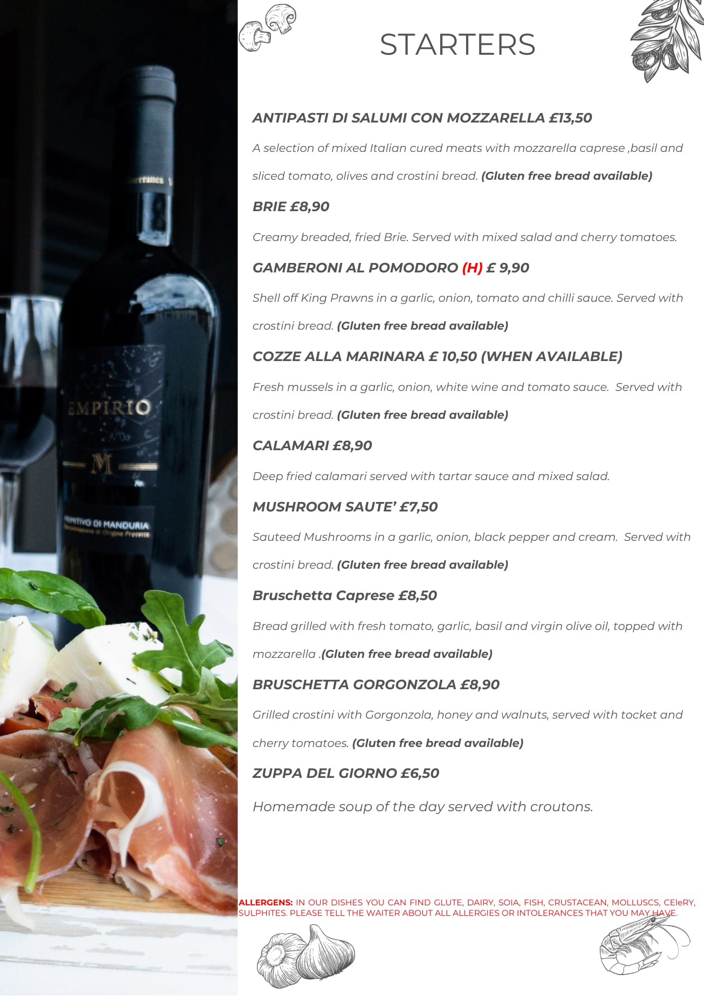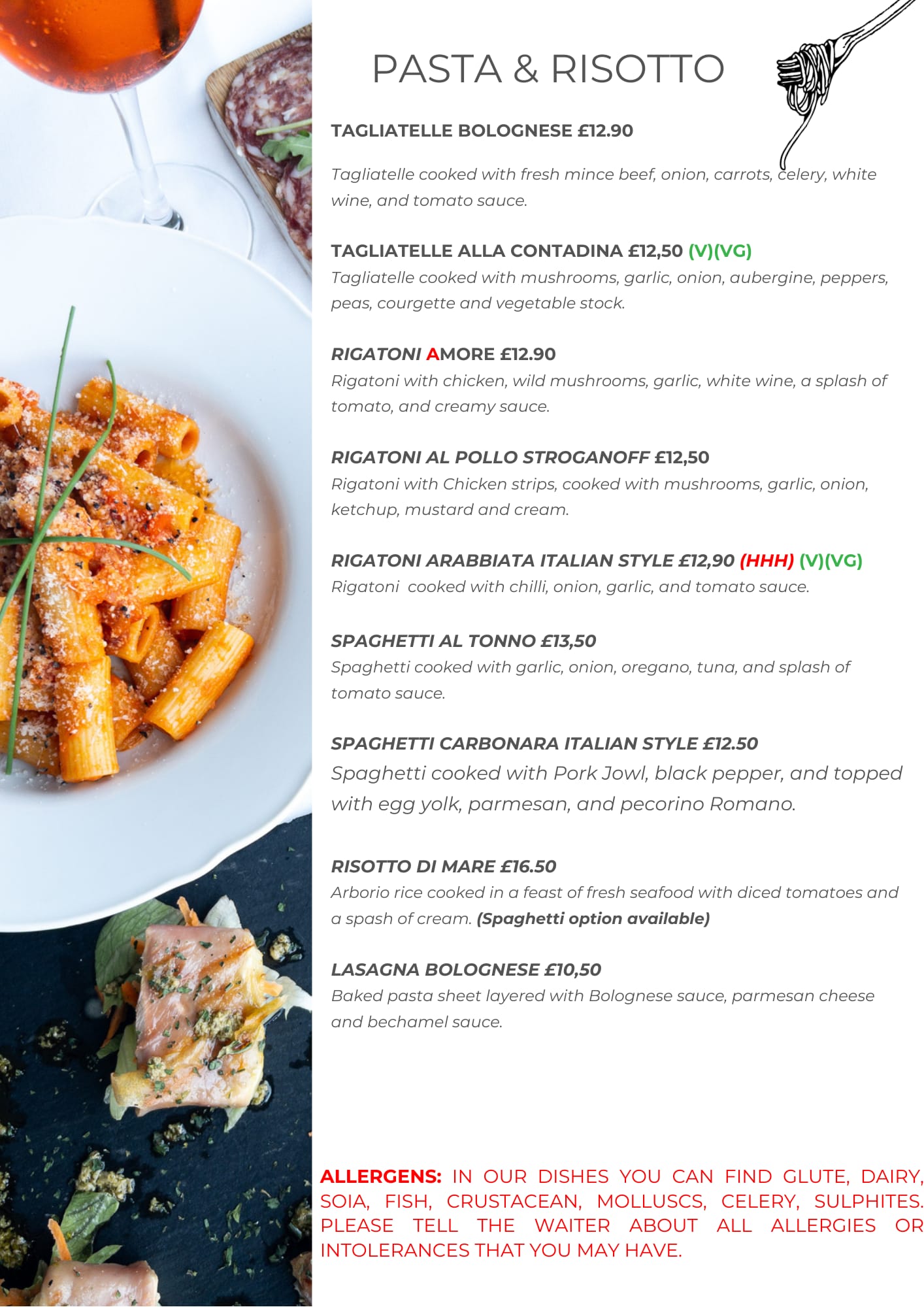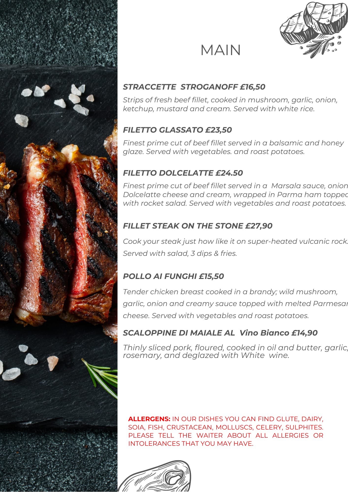 Starter MENU main MENU fish & sides MENU pizza MENU pasta & risotto MENU dessert MENU Takeaway menu beer & soft drinks wine list sparkling wines & spirits Reserve your table today CONTACT US!